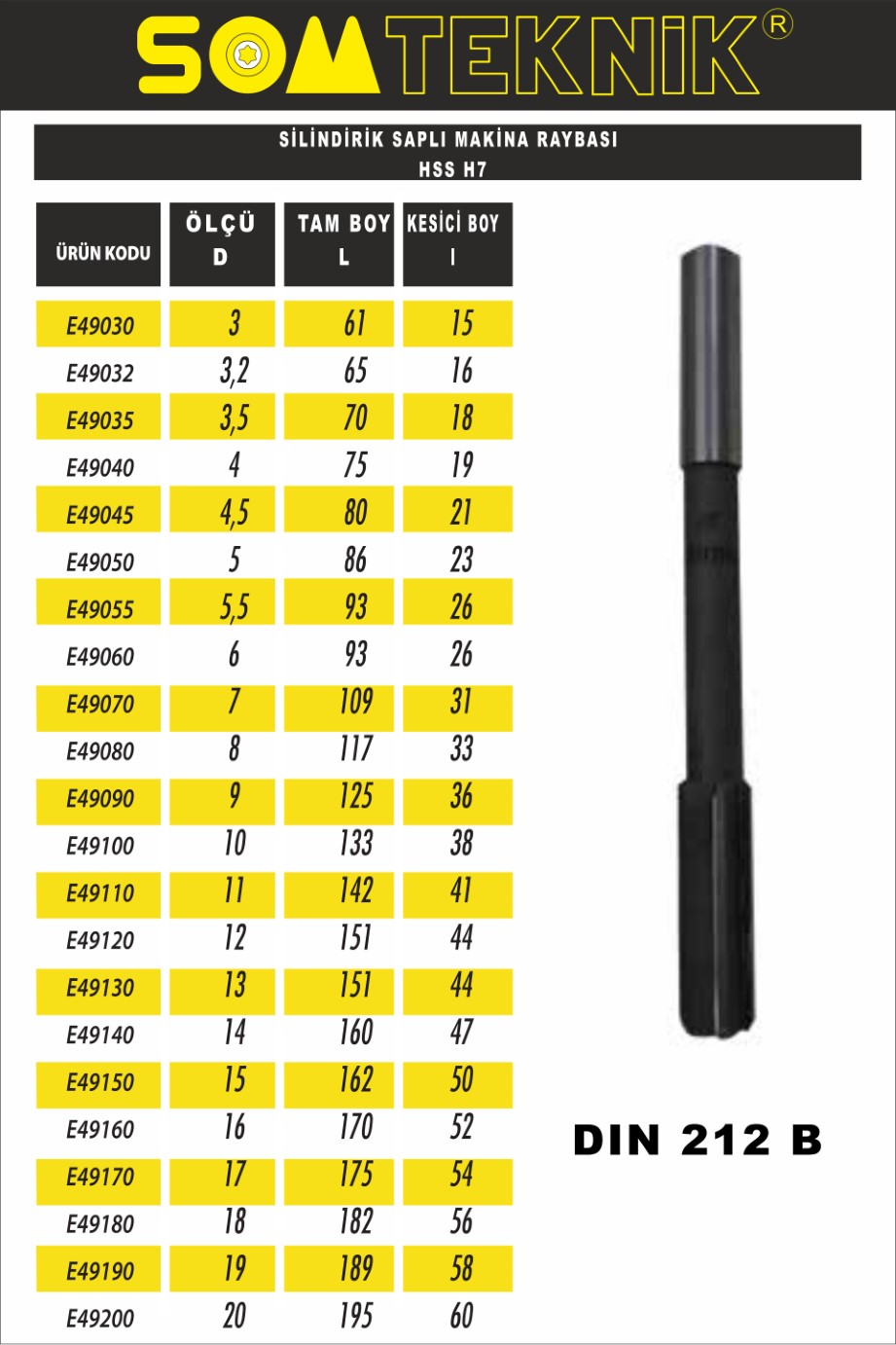 CHUAN BRAND SİLİNDİRİK SAPLI EL RAYBASI HSS H7