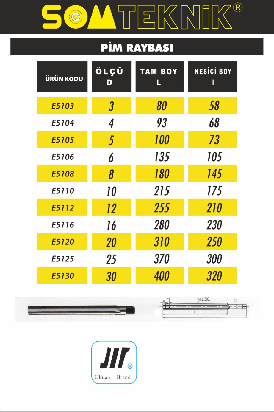 CHUAN BRAND SİLİNDİRİK SAPLI MAKİNE RAYBASI HSS H8