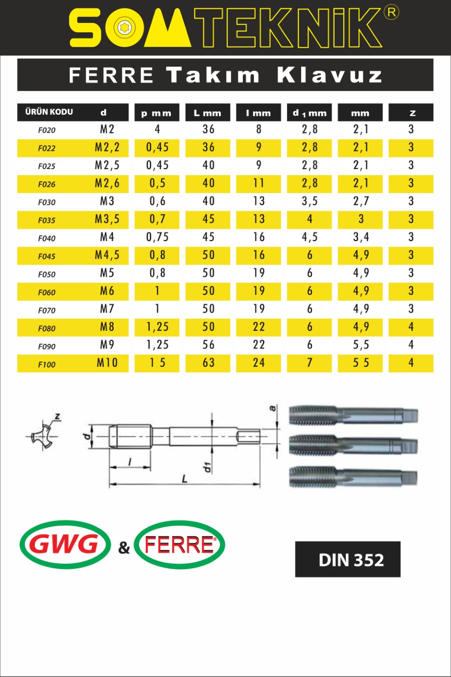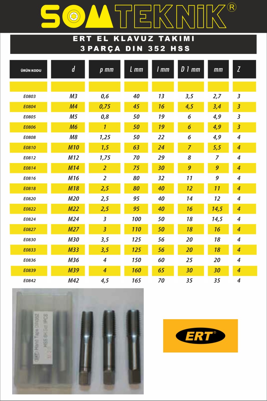 ERT EL KILAVUZ TAKIMI 3 PARÇA DIN 352 HSS