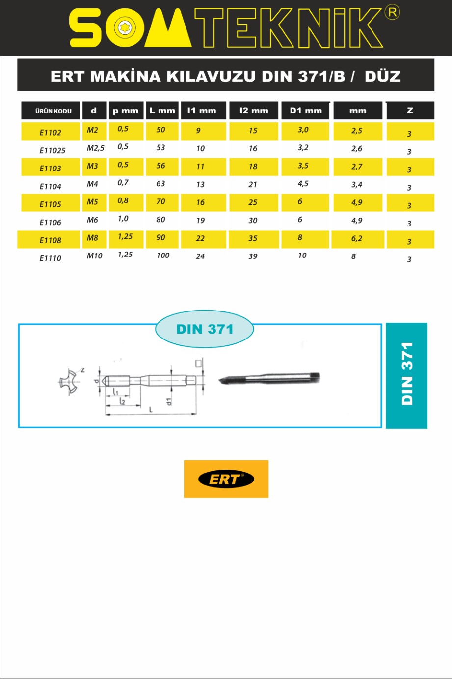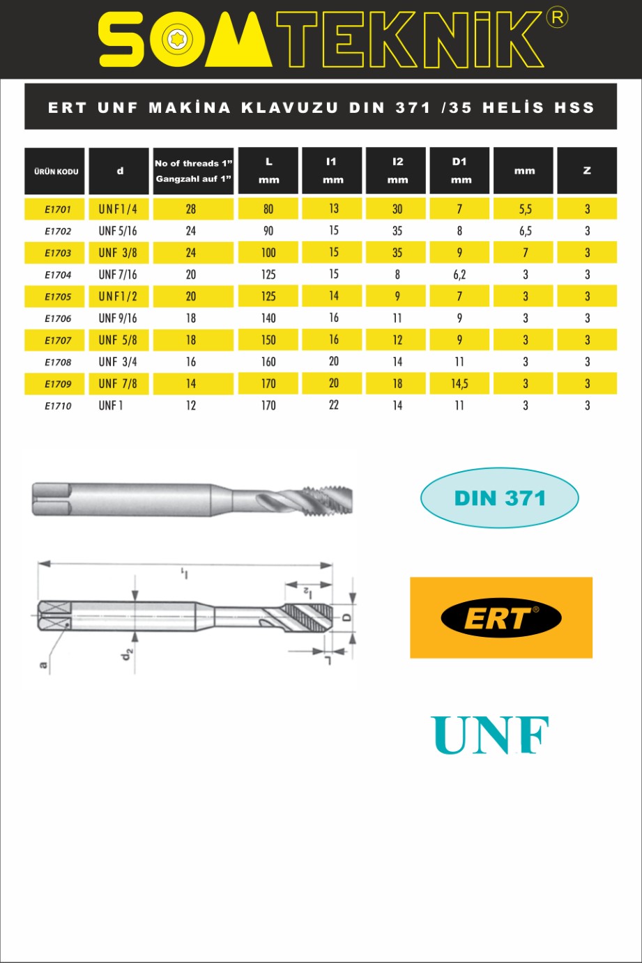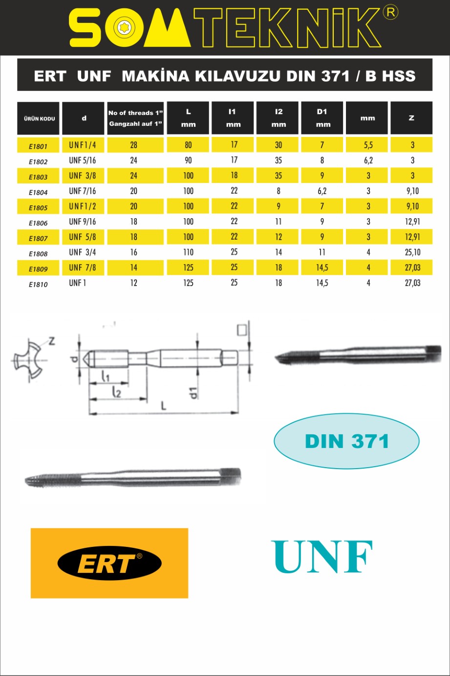 ERT UNF MAKİNE KILAVUZU İNCE DİŞ DIN 371 / B HSS
