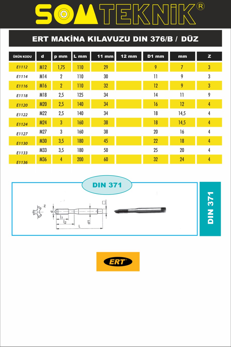 ERT MAKİNE KILAVUZU DIN 371/C 35 DERECE DÜZ