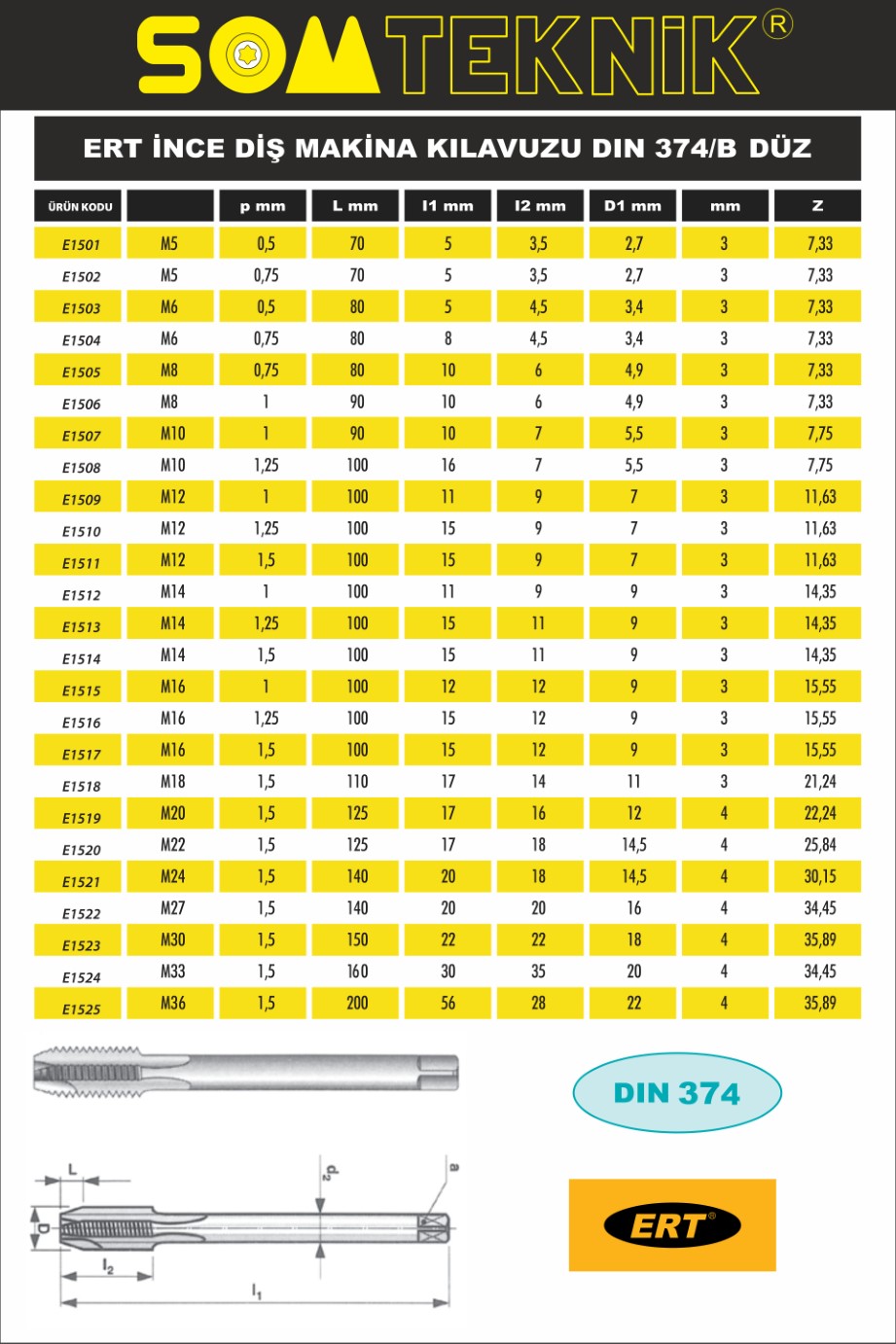 ERT İNCE DİŞ MAKİNE KILAVUZU DIN 374 / C 35 DERECE DÜZ