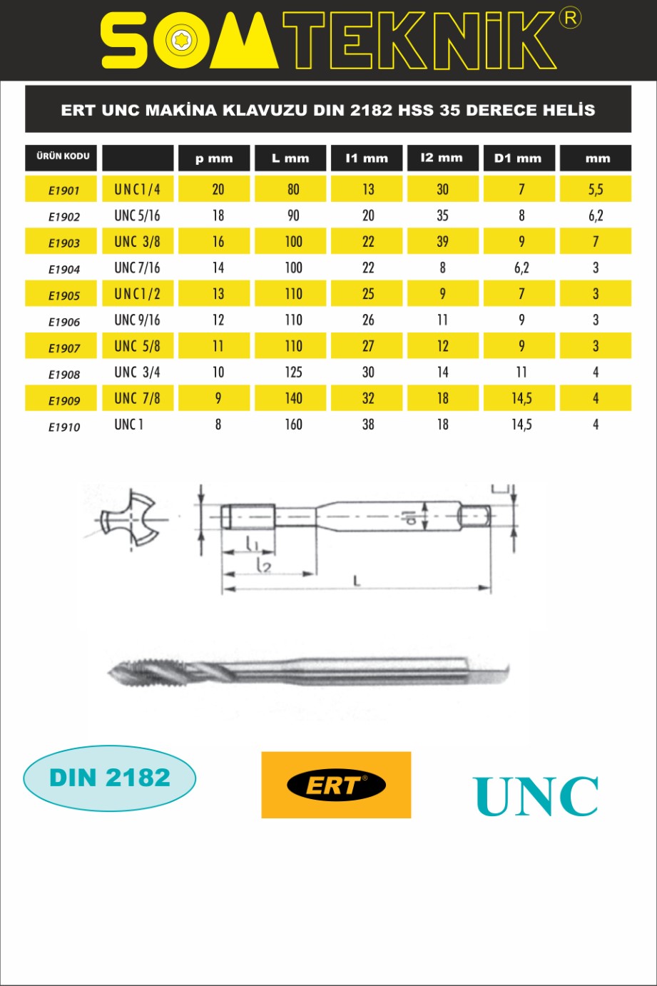 ERT UNC MAKİNE KILAVUZU DIN 2182 HSS 35 DERECE HELIS