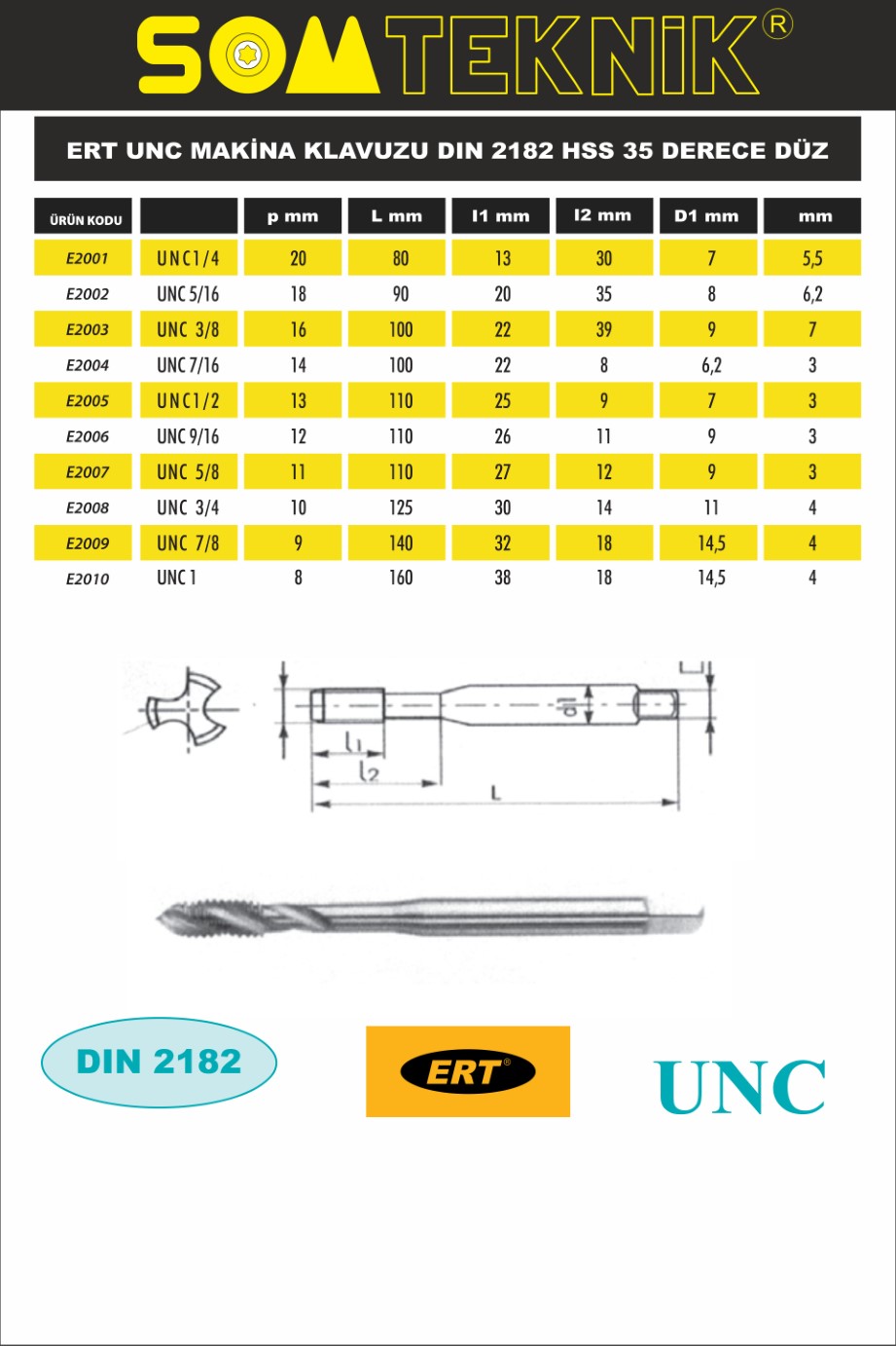 ERT UNC MAKİNE KILAVUZU DIN 2182 HSS 35 DERECE DÜZ