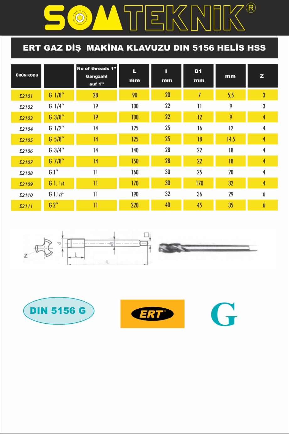 ERT GAZ DİŞ MAKİNE KILAVUZU DIN 2183 HSS UÇ BİLEMELİ