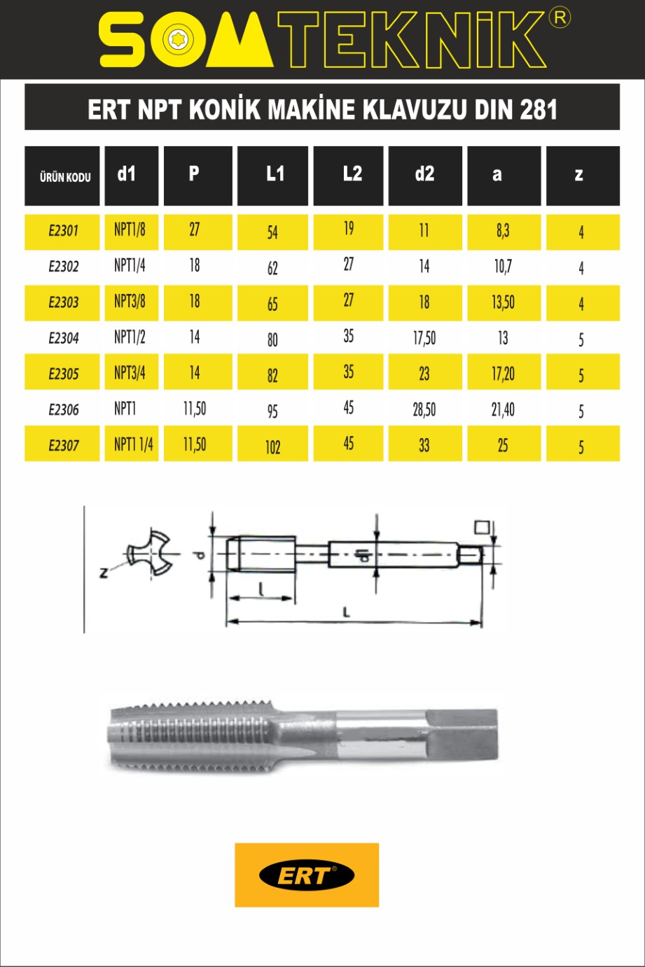 ERT NPT KONİK MAKİNE KILAVUZU DIN 281