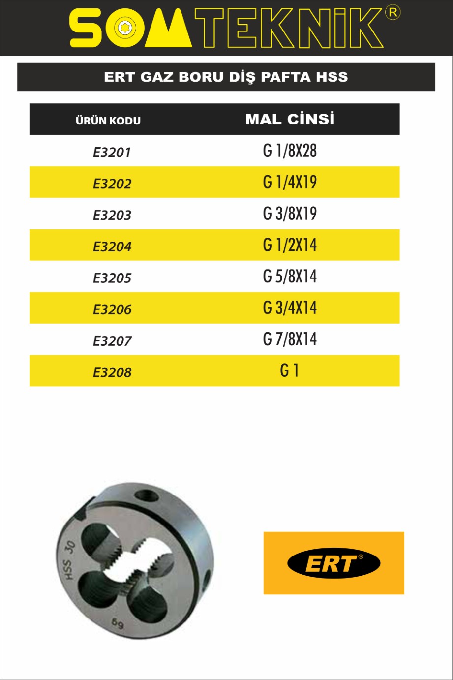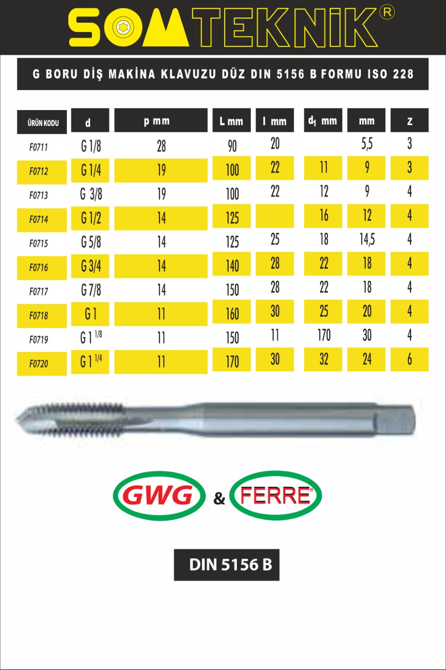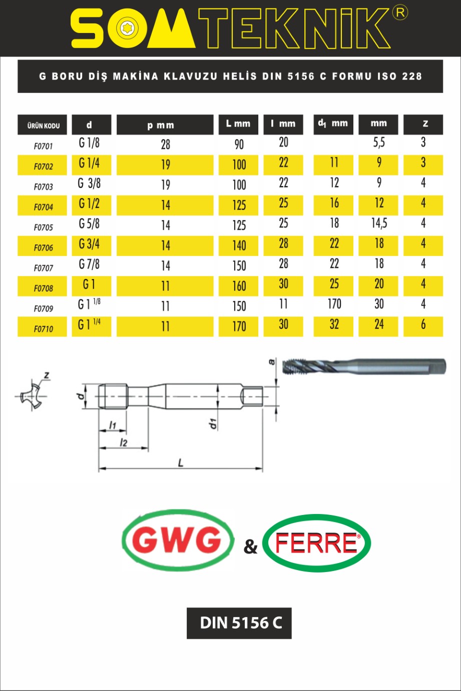 FERRE G BORU DİŞ MAKİNE KILAVUZU DIN 5156 / C ISO 228 HELIS