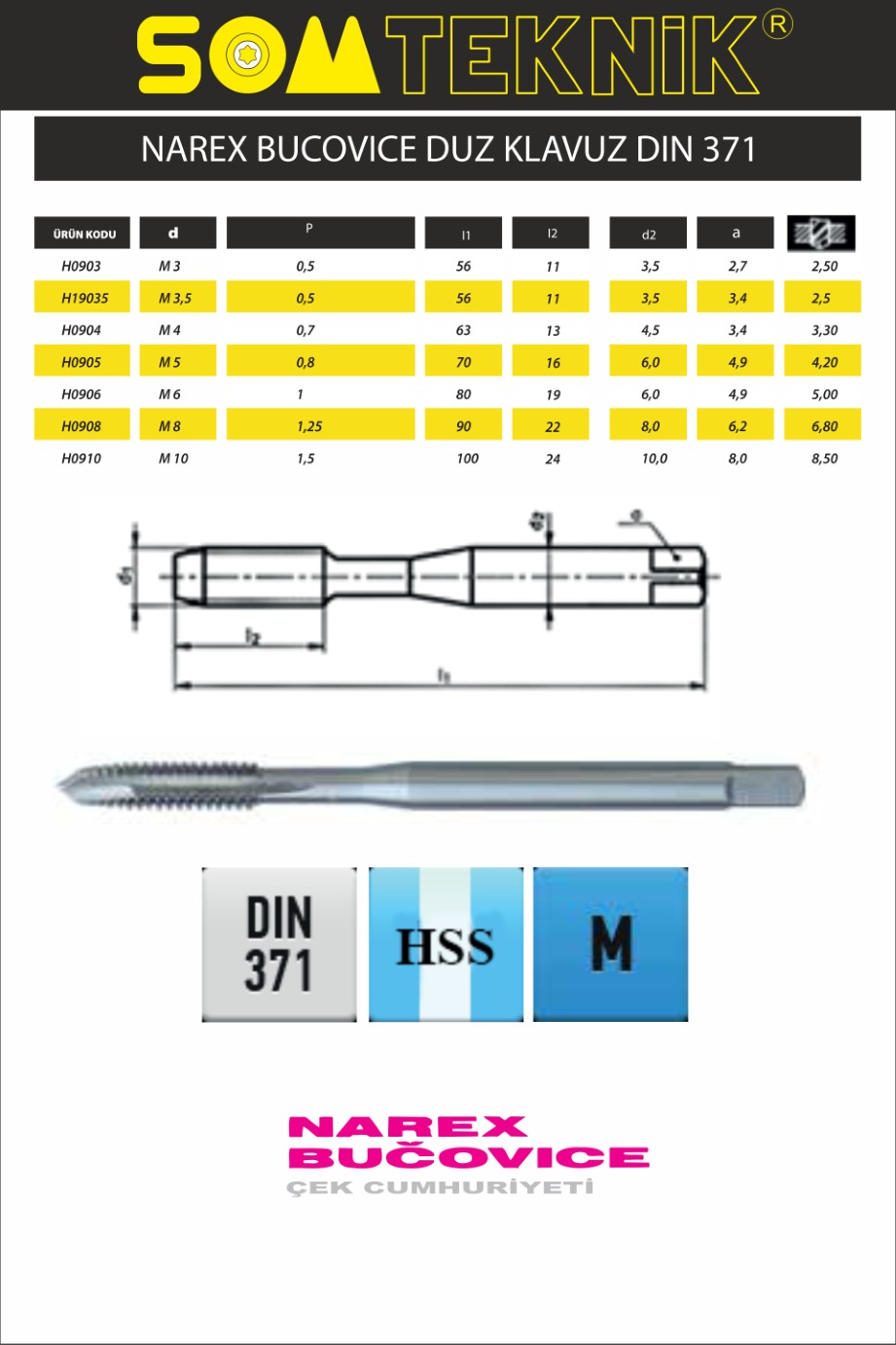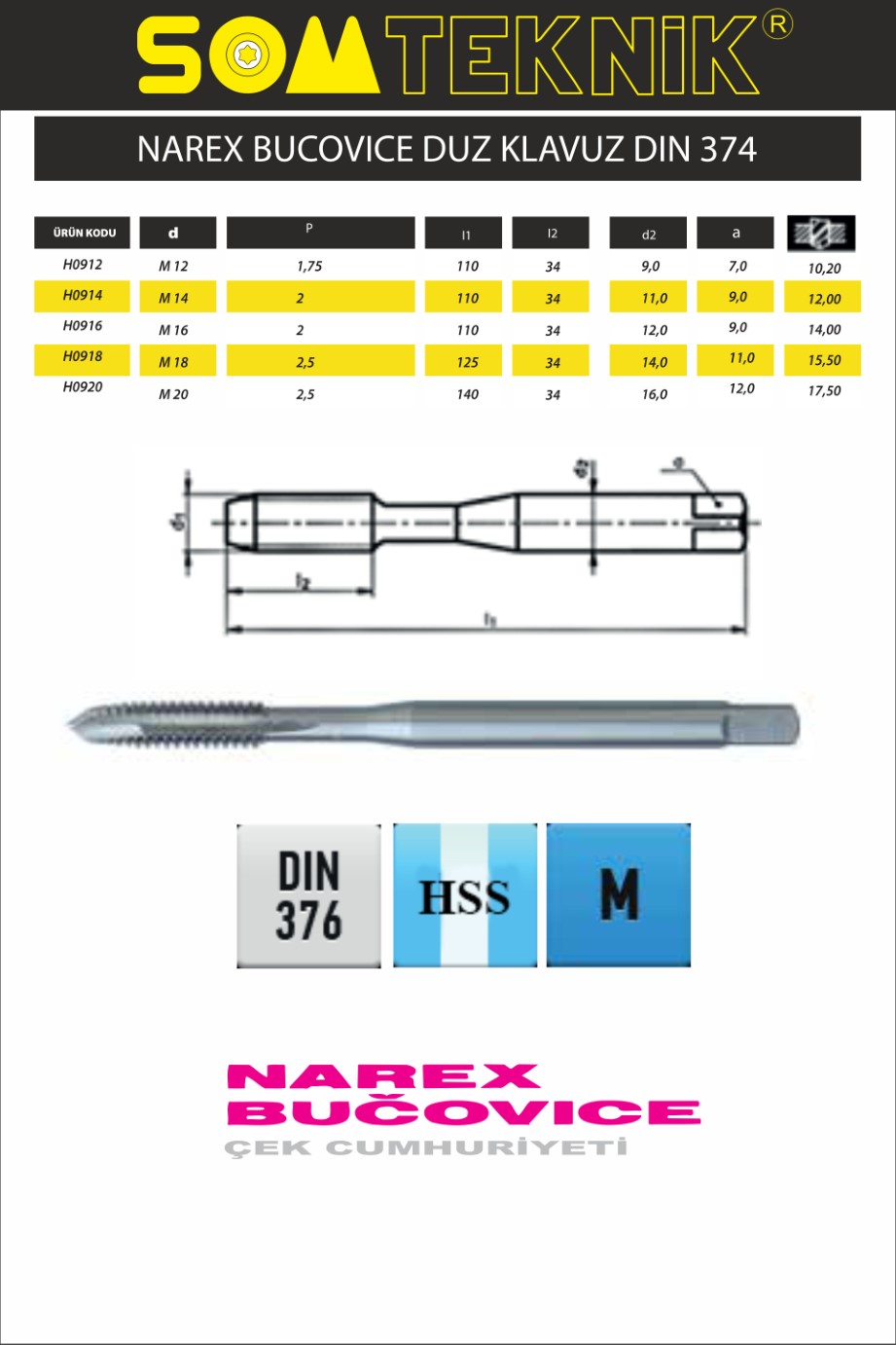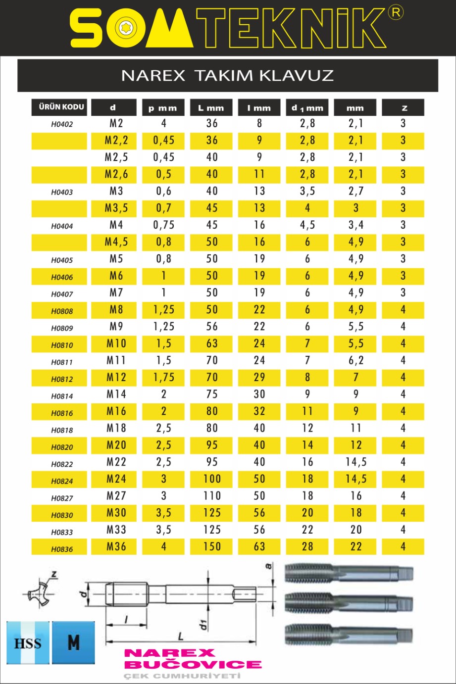 NAREX METRİK İNCE DİŞ PAFTA HSS