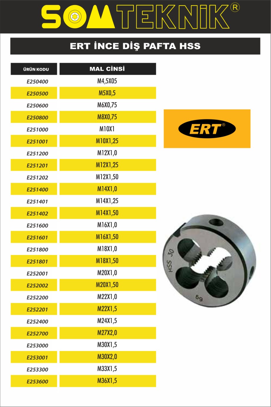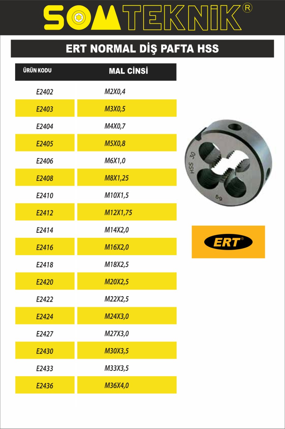 NAREX METRİK NORMAL DİŞ PAFTA HSS