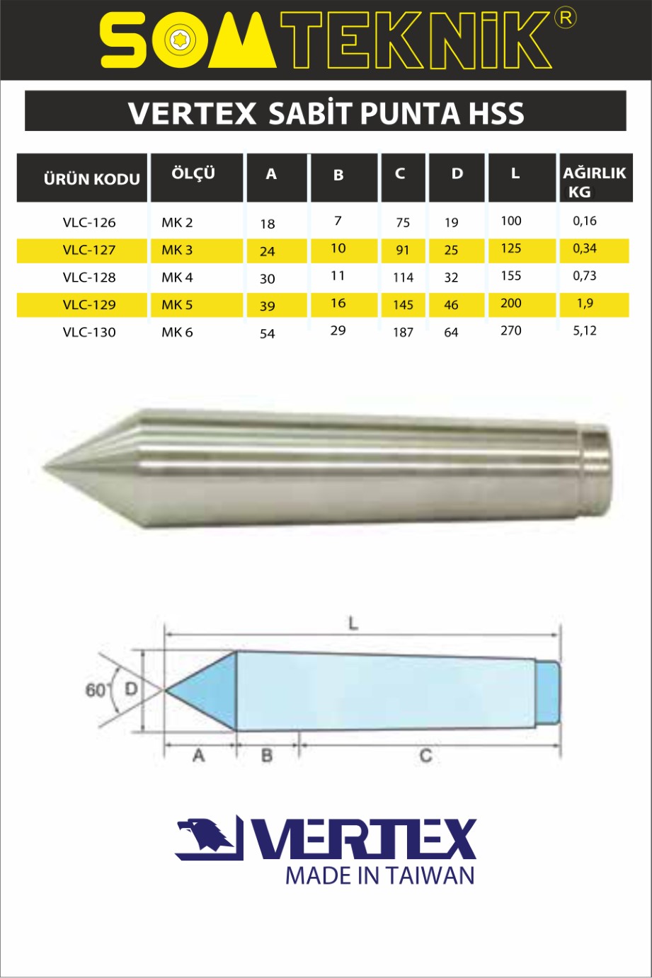 VERTEX SABİT PUNTA ELMAS UÇLU