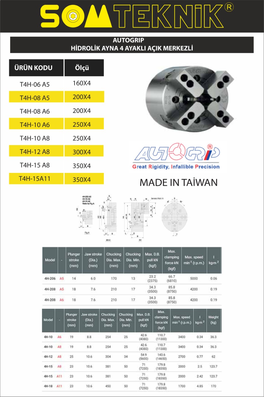 AUTOGRIP HİDROLİK AYNA 4 AYAKLI AÇIK MERKEZLİ