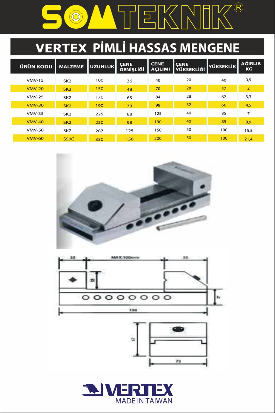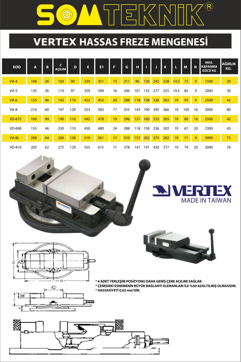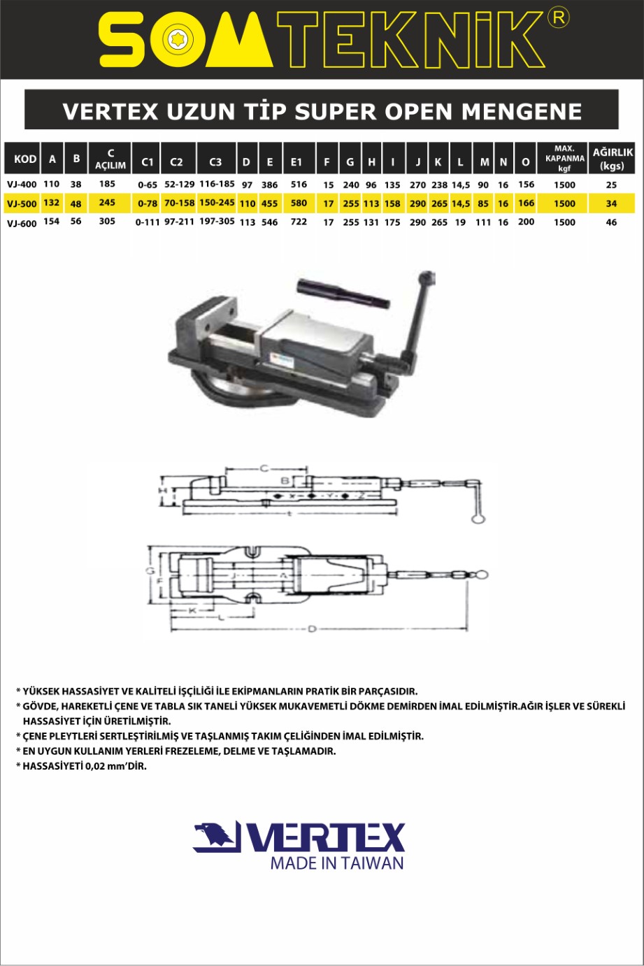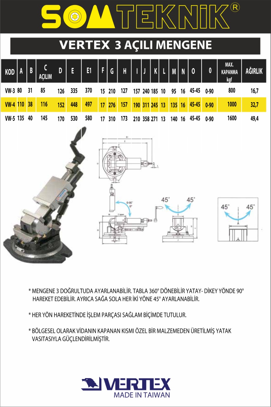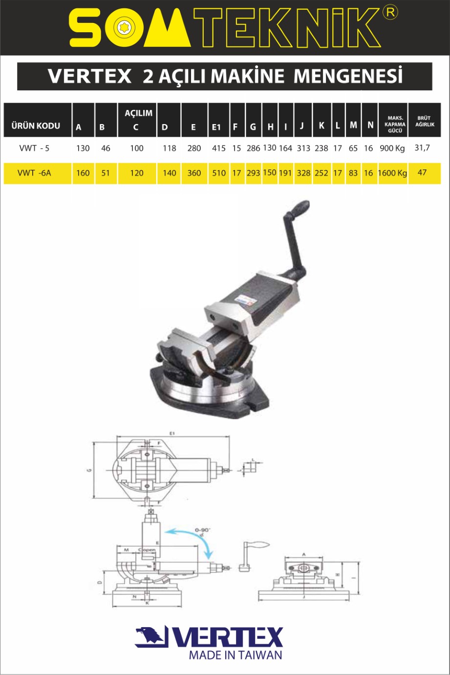 VERTEX 2 AÇILI MAKİNE MENGENESİ