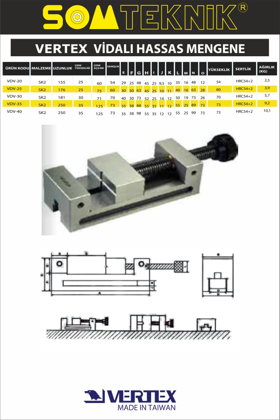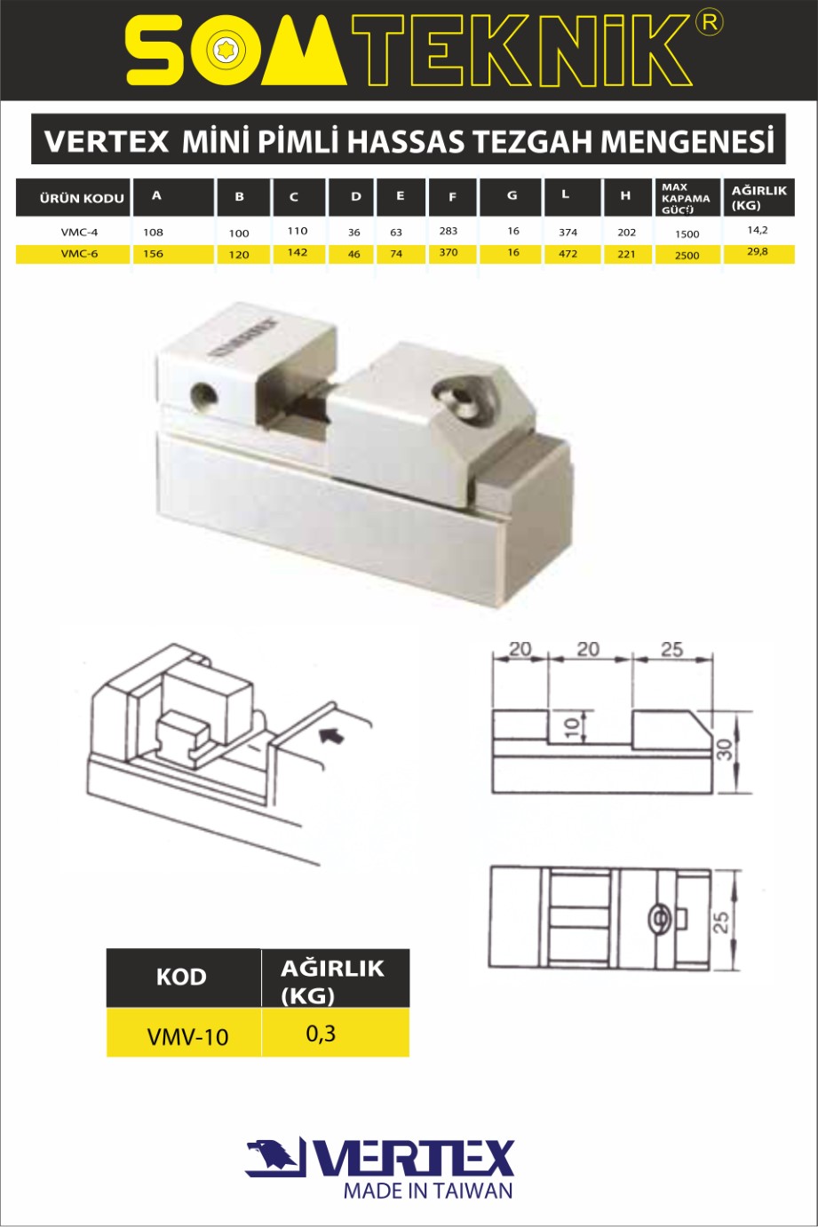 VERTEX MİNİ PİMLİ HASSAS TEZGAH MENGENESİ