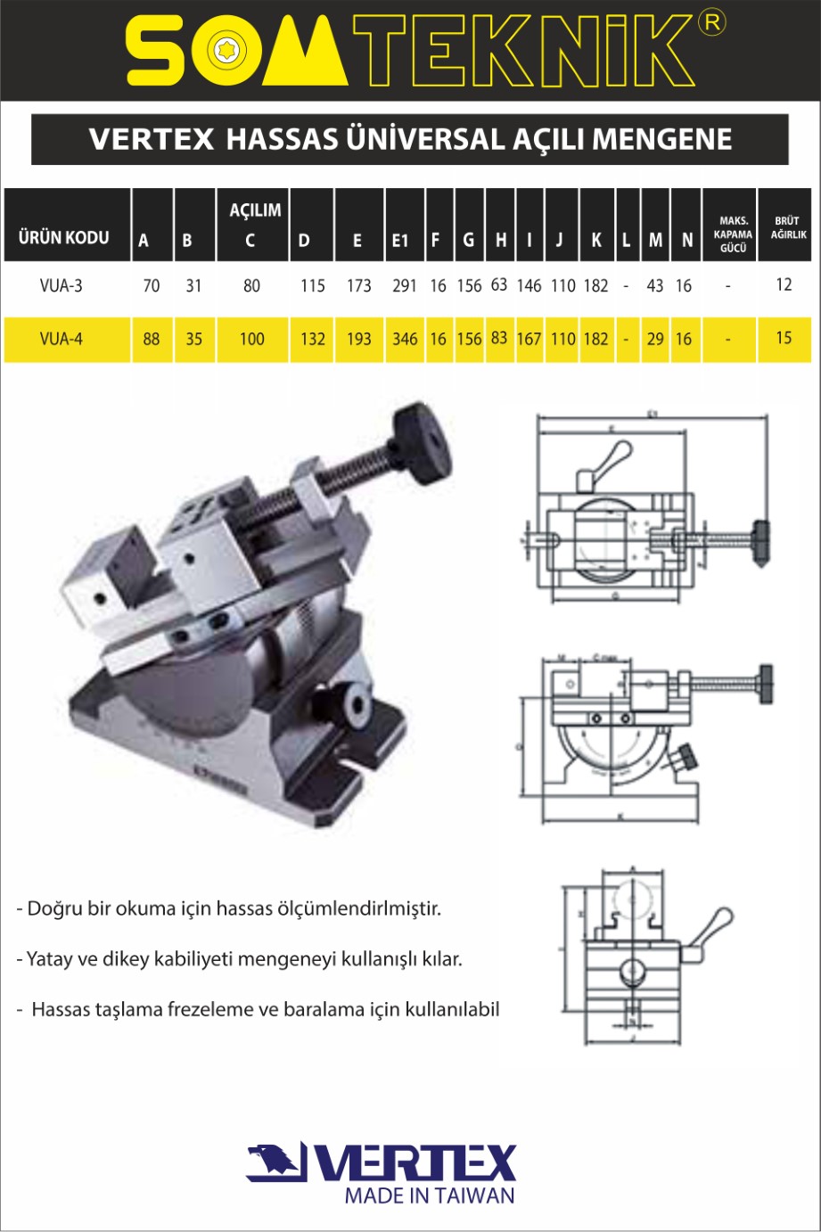 VERTEX HASSAS ÜNİVERSAL AÇILI MENGENE