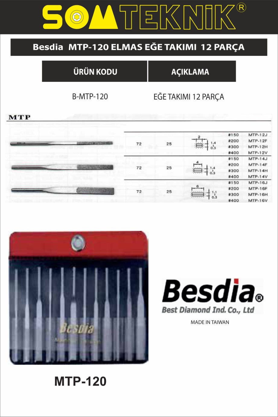 BESDIA MTP 120 ELMAS EĞE TAKIMI 12 PARÇA