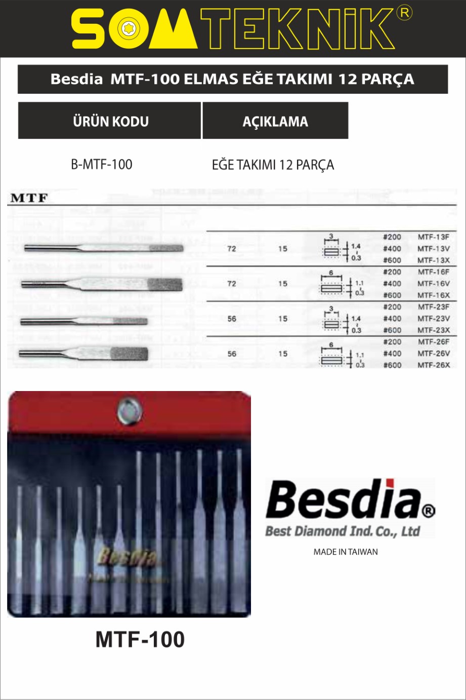 BESDIA MTF 100 ELMAS EĞE TAKIMI 12 PARÇA