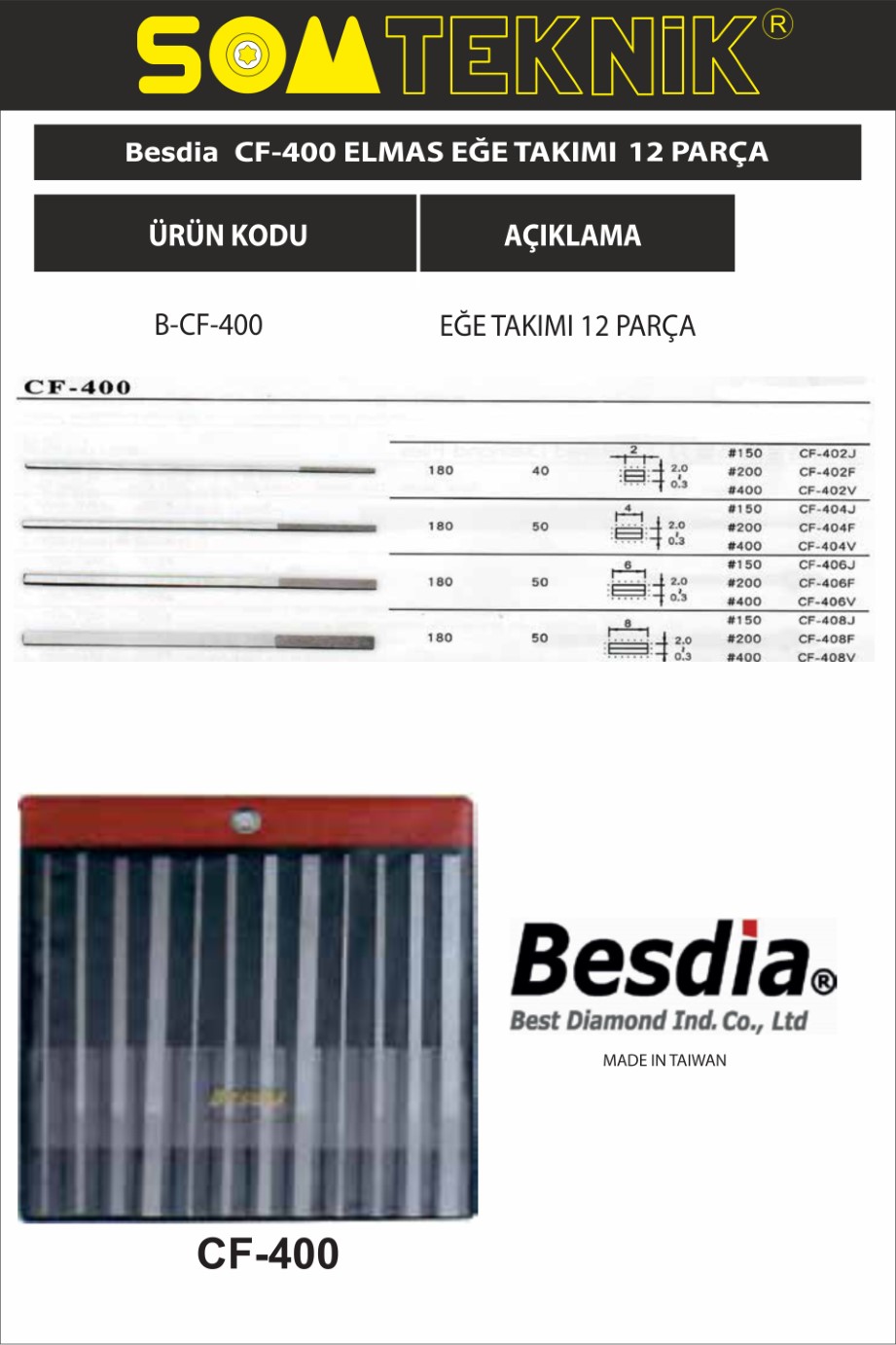 BESDIA CF 400 ELMAS EĞE TAKIMI 12 PARÇA