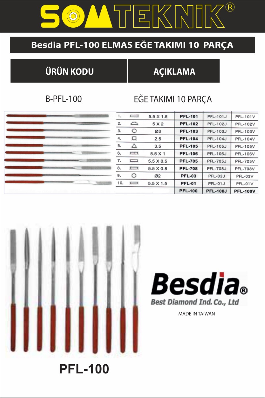 BESDIA PFL 100 ELMAS EĞE TAKIMI 10 PARÇA