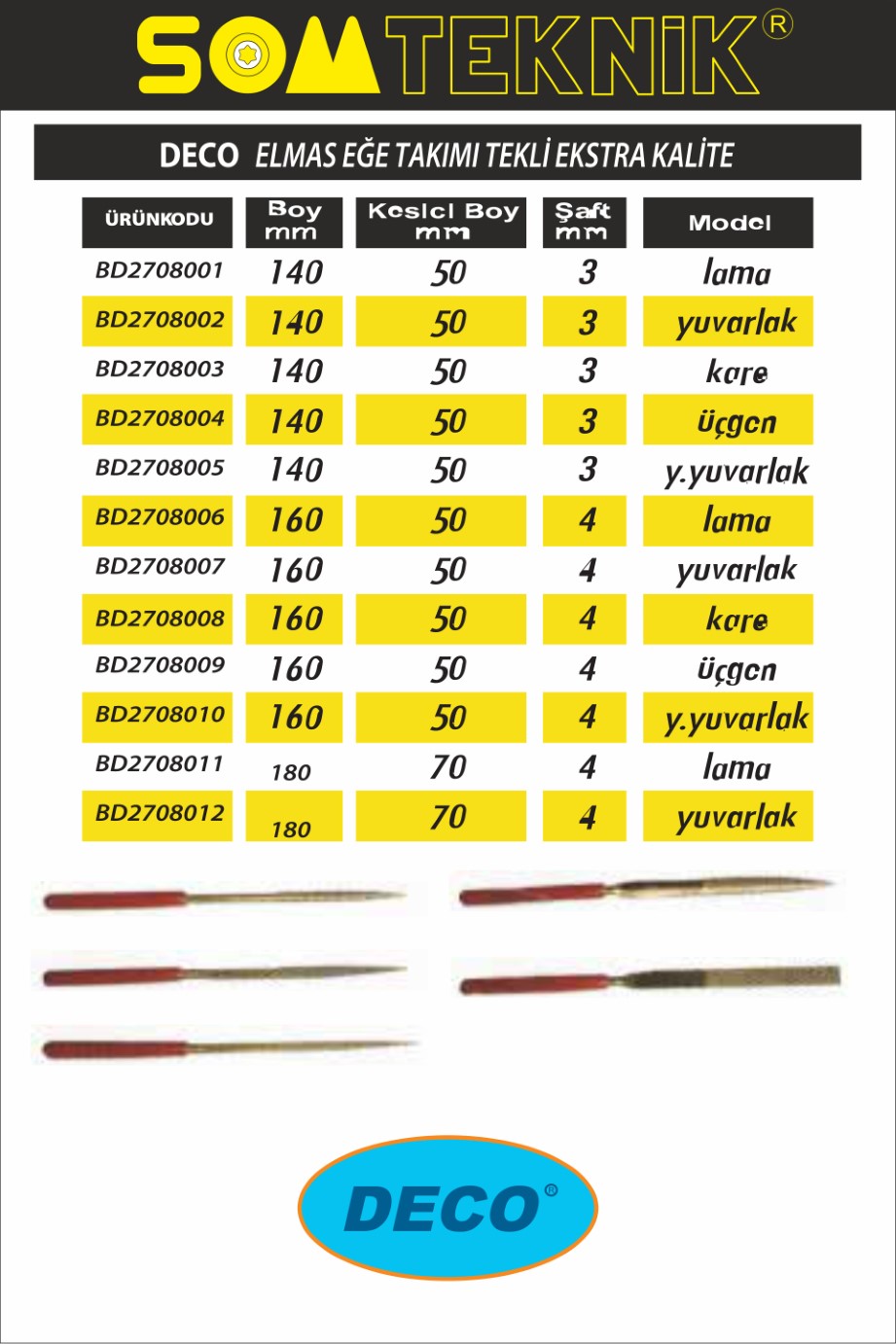 DECO EKSTRA KALİTE 5 PARÇA ELMAS EĞE TAKIMI